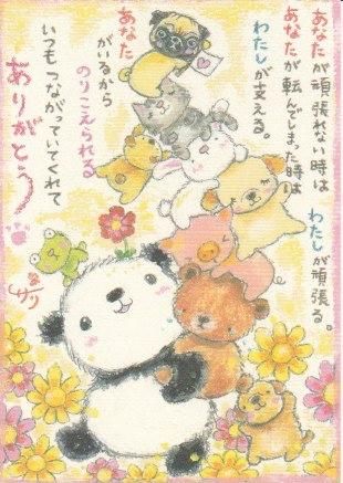 可愛い動物達の絵となかなか言葉に出来ない、ふとした時に想う、そんな心温まるメッセージ。