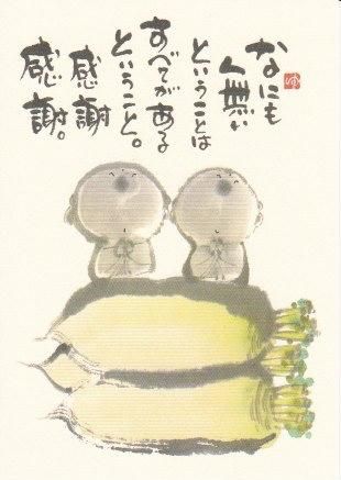 愛らしいお地蔵さんをはじめ、猫・天使・ふくろう・お花などのモチーフと、温かい書のメッセージ。
